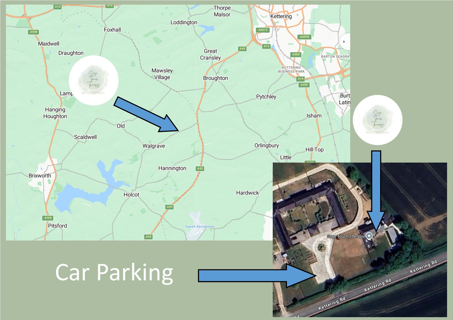 There is plenty of car parking space, immediately on your left as you drive through the gates. Sage Touch Therapy is based at Oak House, which is on your right.